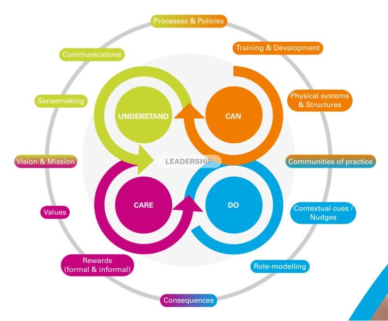 A report by Zara Whysall on how you can apply behavioural science to culture change was one of my favourite reads of the year. She also shows why misalignment, which is often hidden, can pose a serious risk to any organisation. Her “Understand, Care, Can, Do” framework is a very useful distillation.