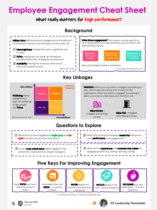 I did my first ever Cheat Sheet this year. Not that surprisingly, it was on employee engagement: theory, evidence, and key questions to ask. Perhaps it’s reassuring to know that when half the content on LinkedIn is AI generated, some of us are still pushing our PowerPoint skills to the absolute limit. I am currently helping to evolve WTW’s approach to engagement in an age of AI and disruption, so there is more to come on this topic in 2026!
