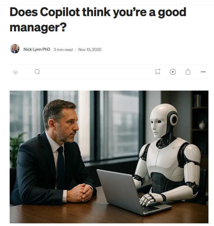 I have also written a few things this year, including this article on Trust and Performance and this one asking “Does Copilot Think You’re A Good Manager?” I think I am ahead of the curve on this one (a bit like my article The AI CEO which I published back in 2019!)